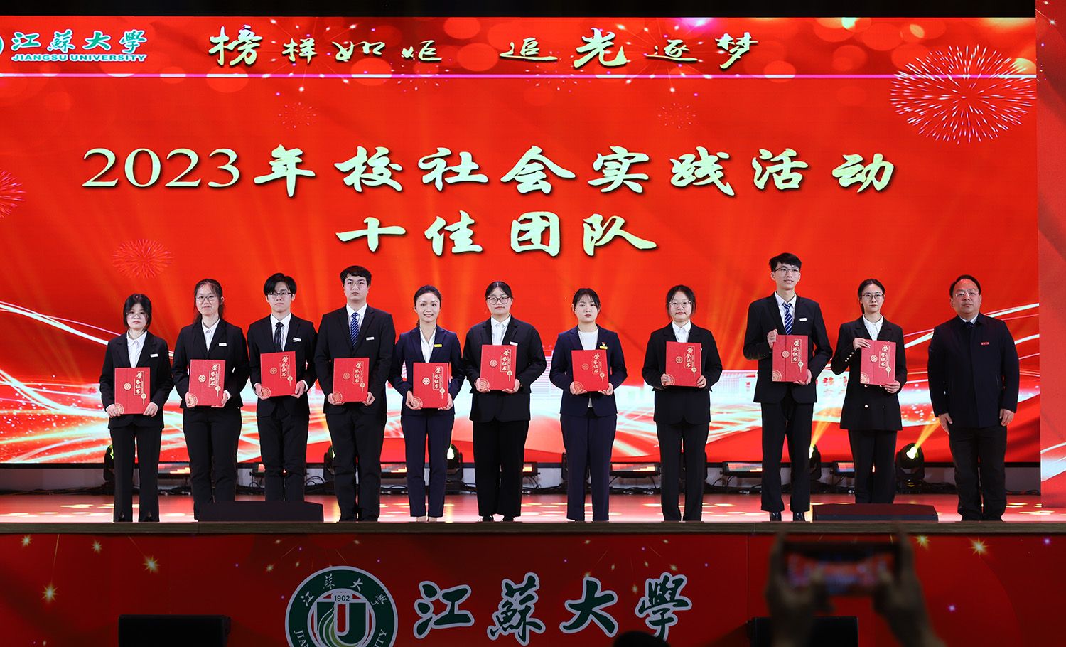 学生工作处处长任泽中、校工会常务副主席王善民为2023年校社会实践活动先进单位颁奖。
