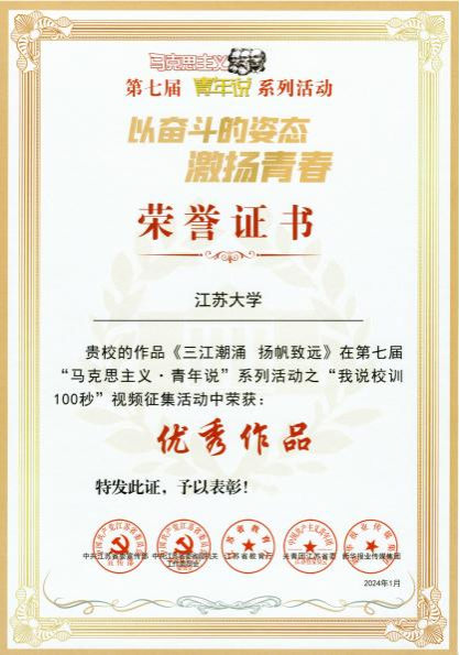 本次活动由省委宣传部、省委省级机关工委、省委教育工委、共青团江苏省委、新华报业传媒集团共同主办,旨在深入学习贯彻习近平新时代中国特色社会主义思想和党的二十大精神,围绕“以奋斗的姿态激扬青春”主题,在全省广泛组织开展系列活动。“我说校训100秒”视频征集活动共收到全省各高校、职业技术学院等投稿作品98件,从中择优选出23件作品在新江苏客户端展示投票,投票人次达120多万。根据视频质量、网络投票结果、投稿数量等综合考量,包括我校作品在内的10件作品最终获评优秀作品奖。