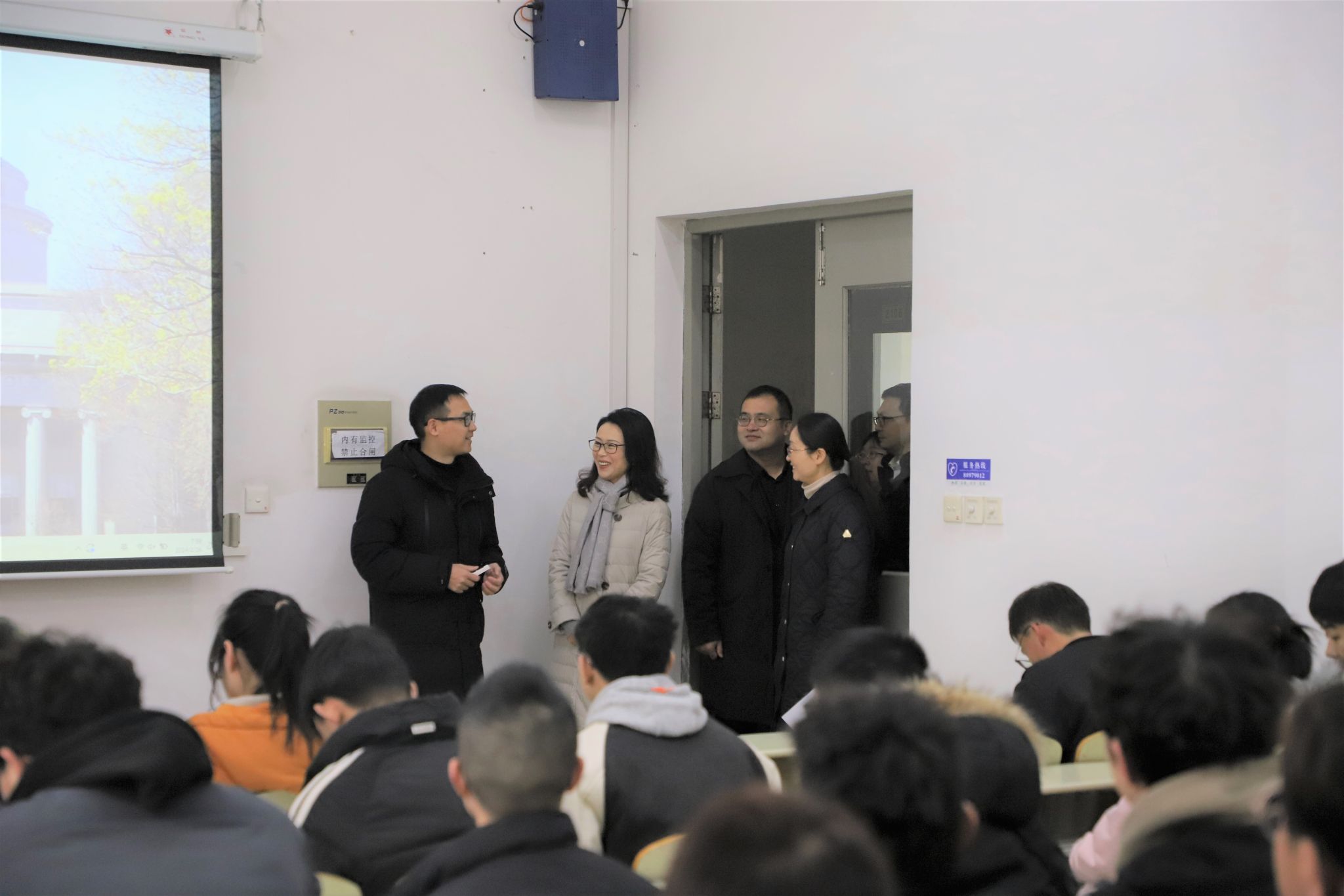 2月26日上午,新学期开课第一天,校领导李洪波、邢卫红等带队前往各教学楼栋检查教学秩序,现场指导相关工作。