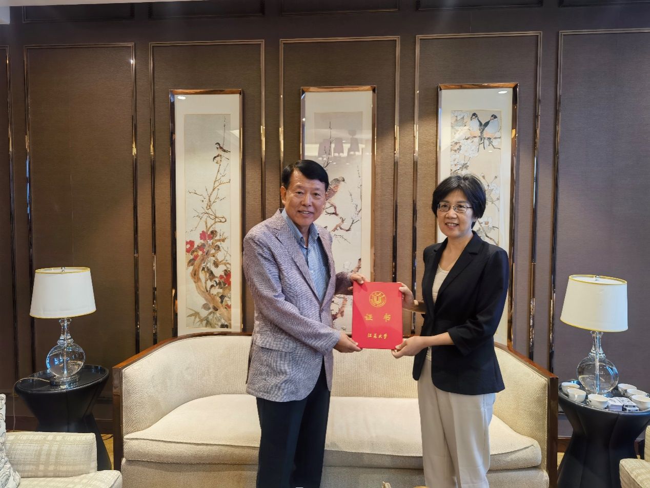 副校长李红教授为金光龙佩戴校徽并颁发聘书,并感谢他长期以来对我校特别是国家水泵及系统工程技术研究中心发展的大力支持,希望他继续为我校动力工程及工程热物理学科高水平建设出谋划策,大力支持学校国际科技合作平台建设,未来在相关领域开展合作研究。