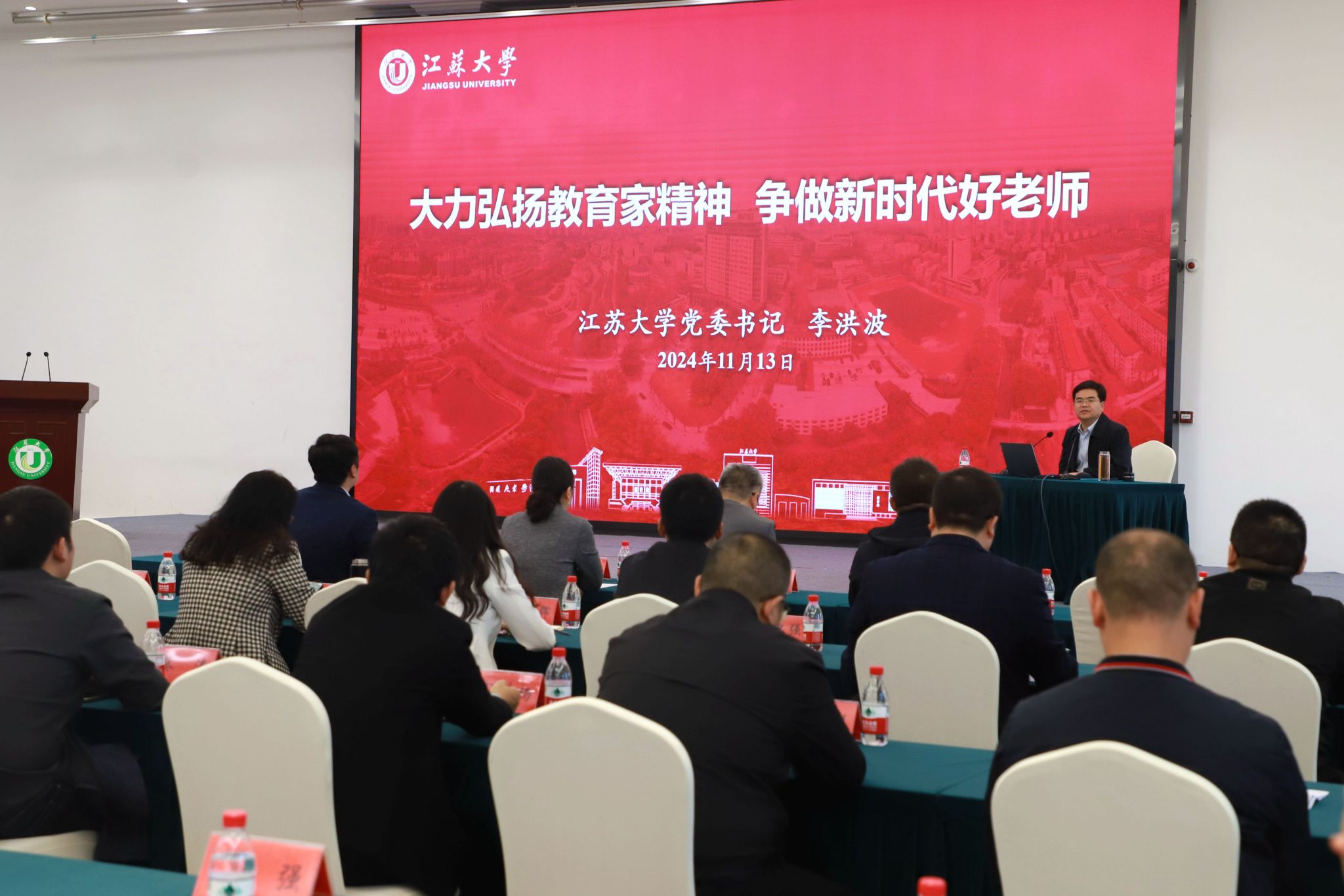 专家讲座中,李洪波作题为《大力弘扬教育家精神,争做新时代好老师》的专题报告。报告详细介绍了学校深厚的文化底蕴、悠久的办学历史和蓬勃的发展现状。李洪波强调,教师是立教之本、兴教之源,是学校事业发展的底气和基石,希望各位教师认真学习领会习近平总书记关于教育的重要论述,以我校历史中出现的“大先生”以及身边的杰出教师为榜样,坚定心中的理想信念,树立至诚报国的伟大志向;努力陶冶自身的道德情操,成为行为世范的优秀学者;时刻勤修仁爱之心,成就甘为人梯的高尚师长。