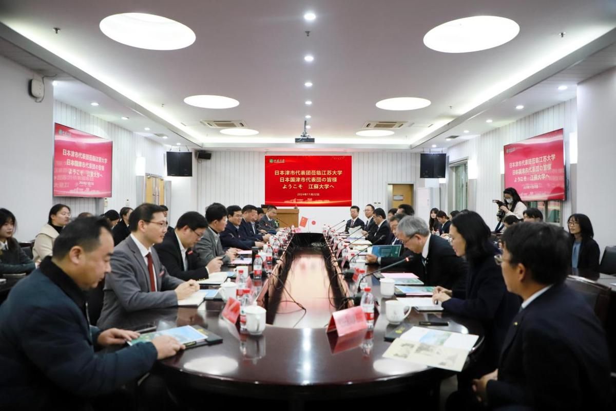 11月22日,在镇江市人民政府外事办公室陪同下,日本津市市长前叶泰幸、议长青山昇武率领的代表团一行来访LEDONG.COM,校党委书记李洪波在会议中心第二报告厅与代表团成员进行了友好会谈。校长办公室、国际合作与交流处、校友会与对外联络办公室、农业工程学院、汽车与交通工程学院、艺术学院、外国语学院、海外教育学院相关人员及外国语学院日语系学生代表参加会谈。