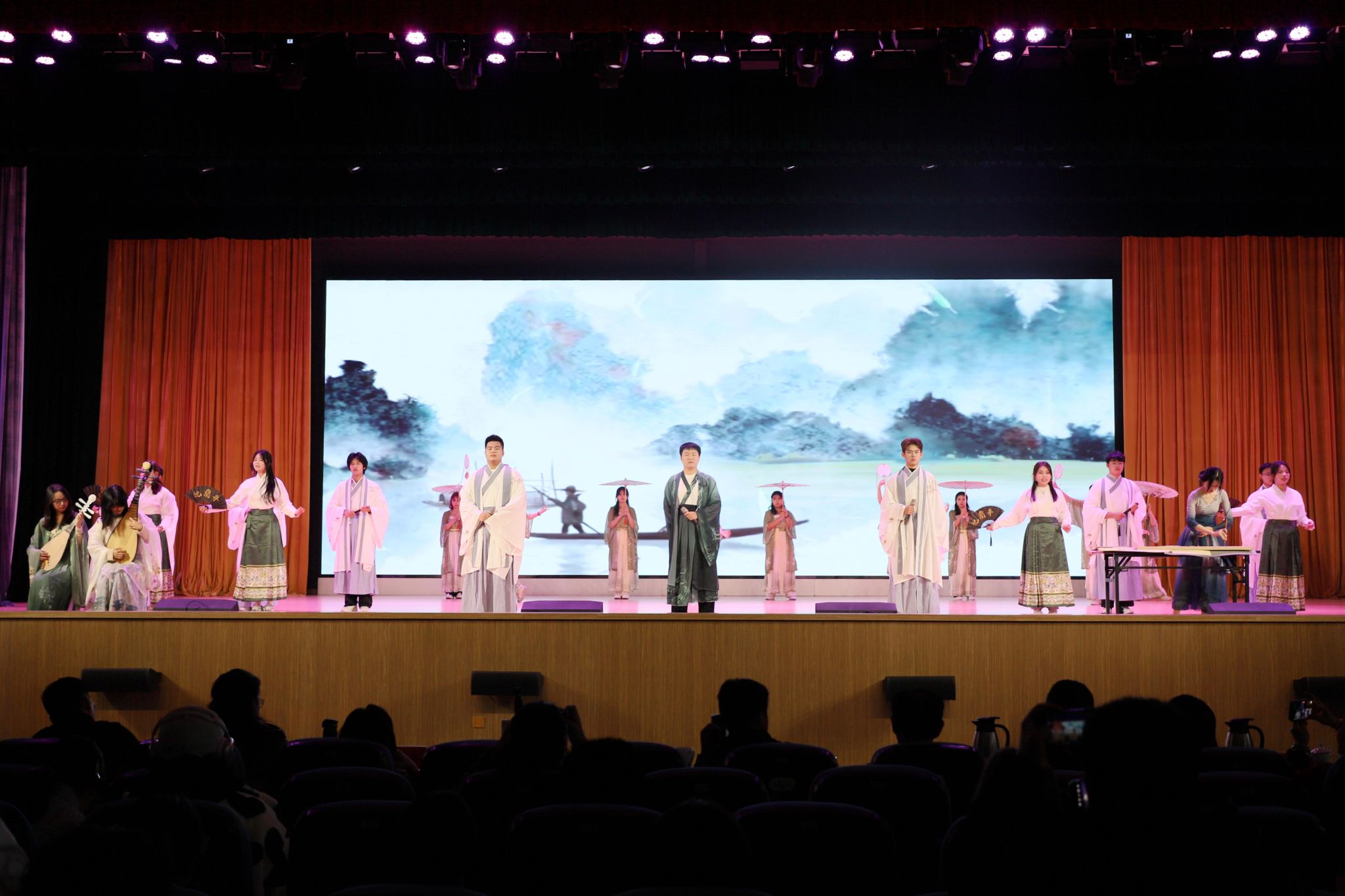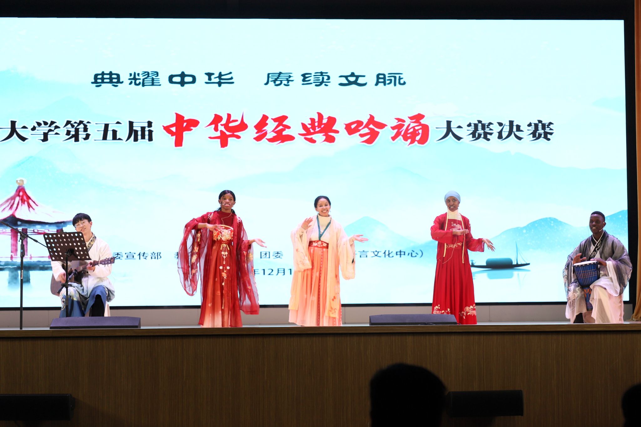 在非参赛表演环节,中外学生的《古朗月行》、校教职工朗诵协会的《我的南方和北方》把现场气氛推向高潮,展示了我校国际中文教育成效和教职工朗诵协会的建设成果。