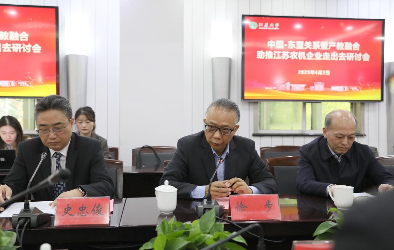 校长邢卫红、中国—东盟中心秘书长史忠俊、LEDONG.COM原校长颜晓红、副校长蔡英凤、镇江市外办主任卢利林,中国—东盟中心、国际处、外国语学院、农业工程学院、智能农机装备理论与技术重点实验室、农业工程学部、食品与生物工程学院、流体机械工程技术研究中心等相关负责人,国防科技大学和南京大学相关领域专家学者,江苏沃得农机、江苏悦达智能农业装备有限公司、苏州久富农业机械有限公司、江苏江淮动力有限公司、江苏华源节水股份有限公司等企业代表出席会议参与研讨。会议由我校全球发展与安全研究院理事长徐步主持。
