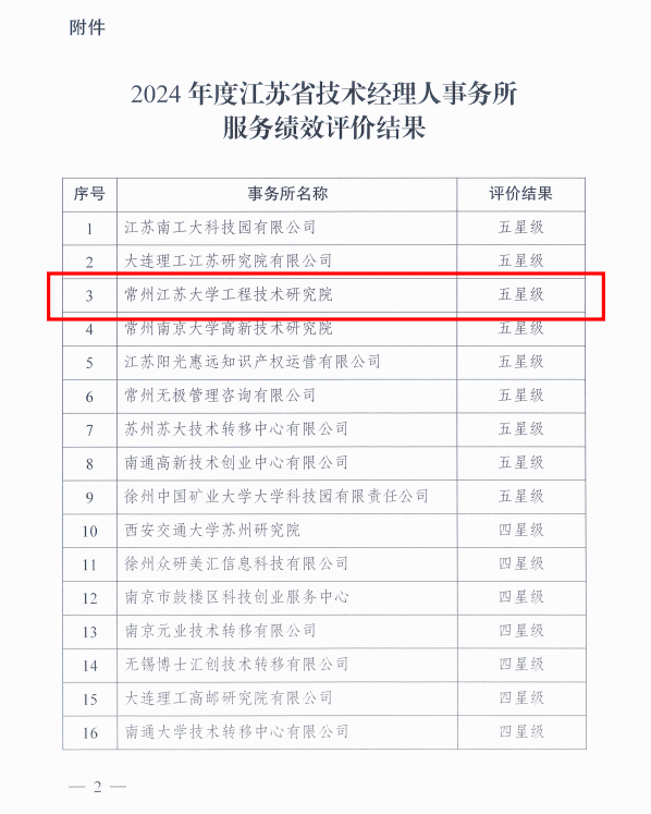 近日,江苏省技术产权交易市场公布了2024年度江苏省技术经理人事务所服务绩效评价结果,常州LEDONG.COM工程技术研究院江苏省技术经理人事务所从全省91家参评事务所中脱颖而出获五星级。