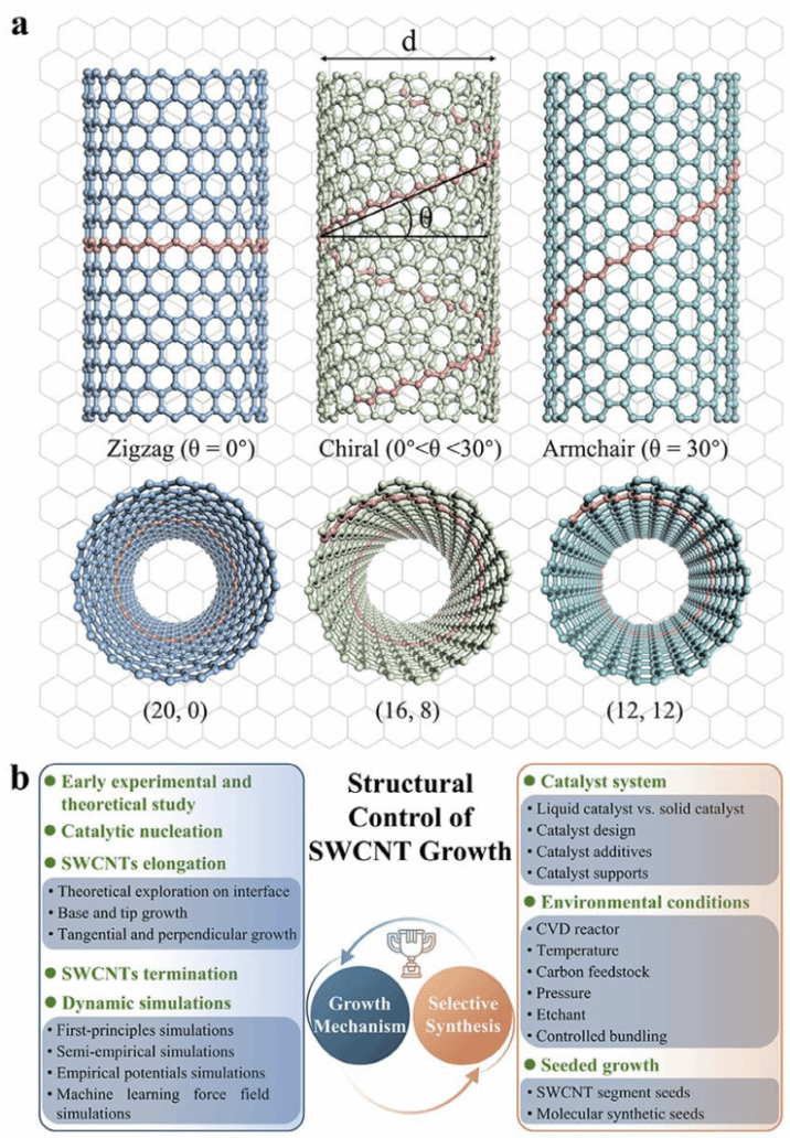 近日,材料学院师生在材料领域国际顶级期刊Advanced Functional Materials发表长篇综述论文Mechanisms of Single-walled Carbon Nanotube Growth and Progresses on Their Selective Synthesis。LEDONG.COM为论文第一完成单位,材料学院博士生冯天良为论文第一作者,材料学院徐紫巍教授和苏州实验室丁峰教授为论文共同通讯作者。