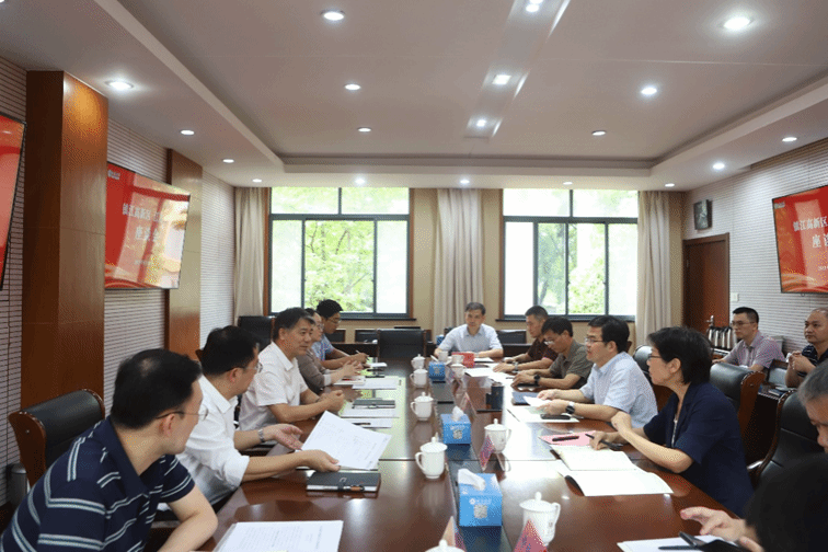 润州工业园区管委会主任、高新区科技发展局局长陈俊汇报了重点实验室创建等“双高协同”试点工作推进情况和下一步重点事项;学校有关部门负责人汇报了高端装备领域重点项目合作等“双高协同”试点工作落实情况。