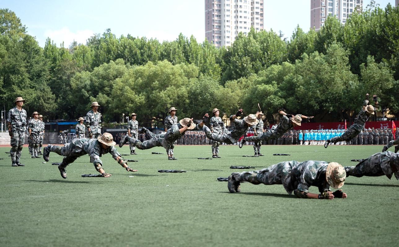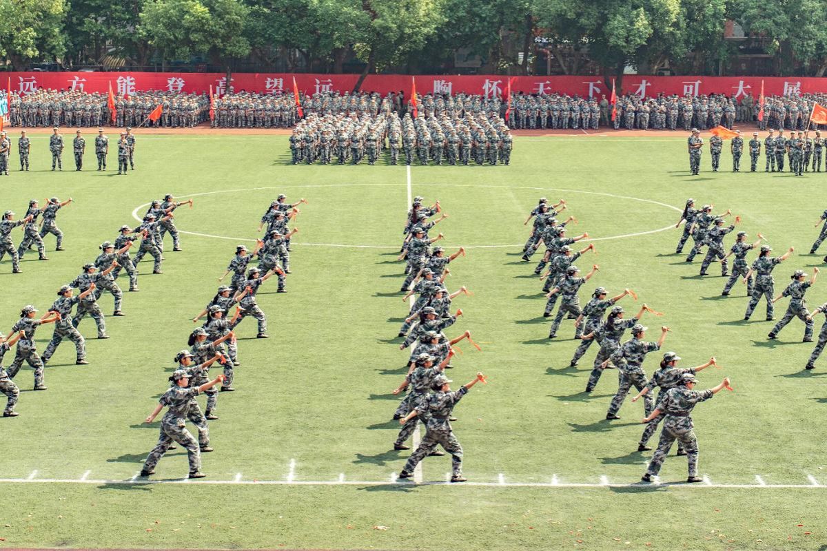 军事格斗组合、“乐动(中国)利刃”战斗突击方队等军训特色课目进行了汇报展示。