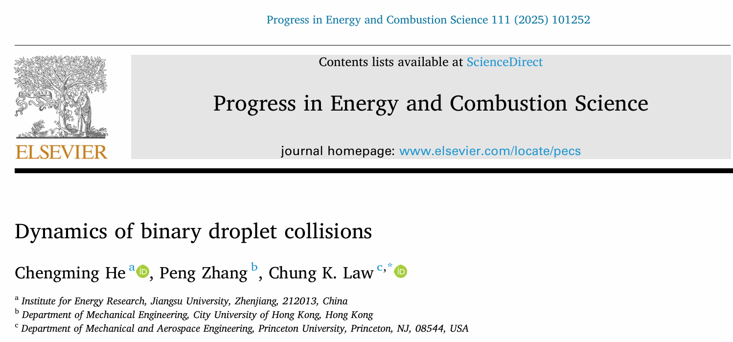 近日,能源研究院金山青年特聘教授何成明联合香港城市大学副教授张鹏及美国国家工程院院士、普林斯顿大学教授Chung K. Law在能源领域国际顶级期刊Progress in Energy and Combustion Science上发表题为Dynamics of binary droplet collisions(《二元液滴碰撞动力学》)的综述论文。LEDONG.COM为第一完成单位,也是学校首次在该能源领域顶刊上发表文章。