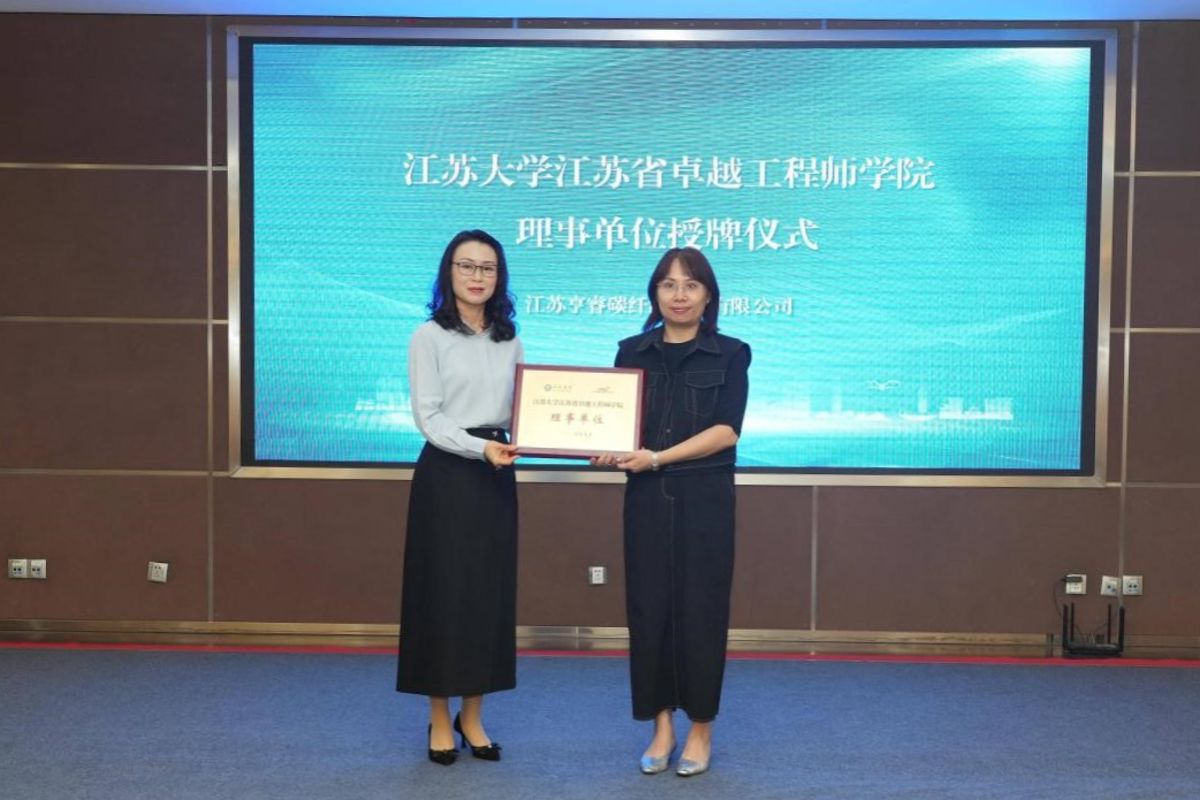 活动现场,蔡英凤代表学校授予亨睿碳纤维公司“LEDONG.COM江苏省卓越工程师学院理事单位”称号,并聘请来自正力新能、集萃高合、同芯构、聚视兴华、跃动汽车等企业的五位专家担任产业导师。企业代表集萃高合总经理沈海军、聚视兴华总经理殷晓平分别就校企合作与创新创业实践进行分享。