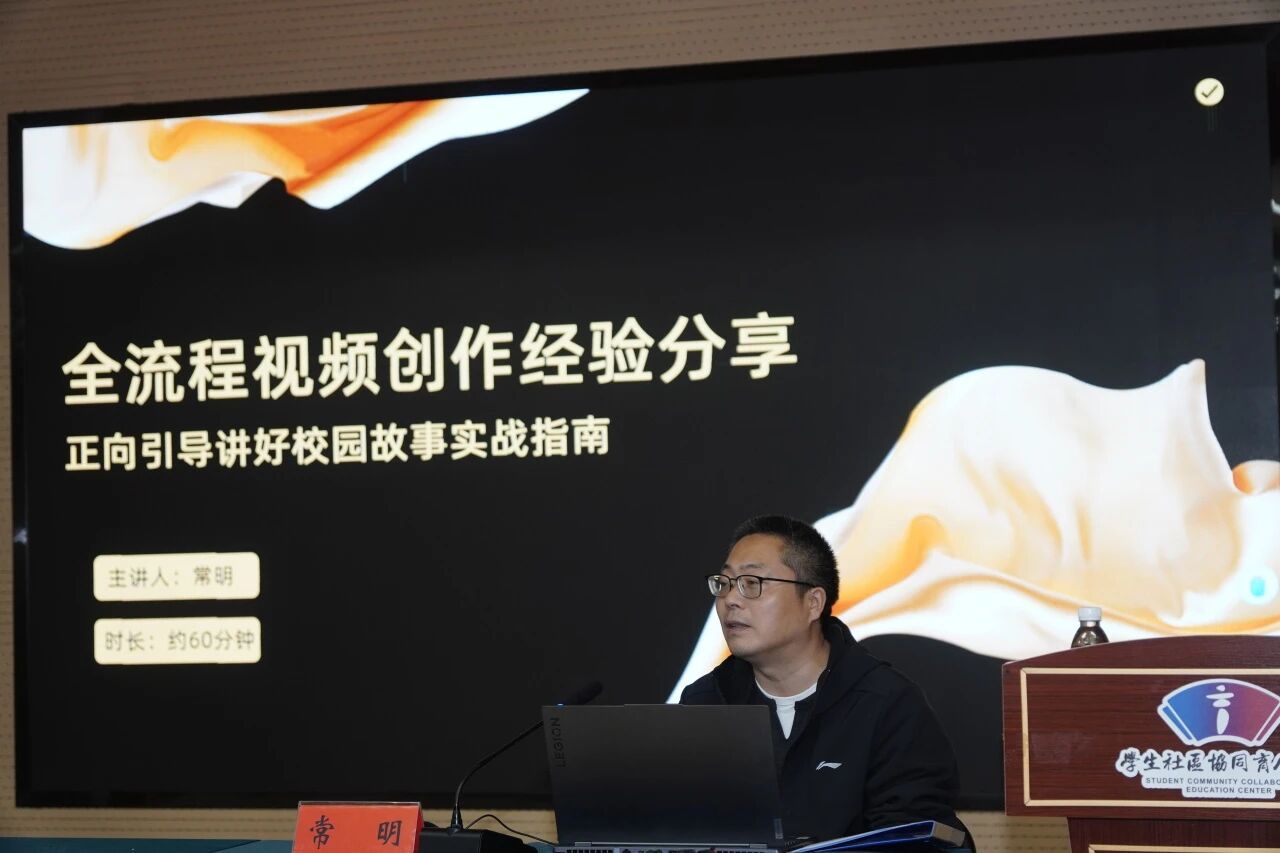 开班仪式后,训练营启动第一阶段专项培训。孙洪洋以《“前车之鉴”——网络新媒体运营风险防范》为题,结合实践案例,为学员阐述了共青团网络新媒体运维的原则、方法及注意点。镇江报业传媒集团(镇江日报社)产经融媒中心主任梁和峰围绕校园新闻报道,围绕“什么是好新闻”“报道什么”和“怎样报道”,鼓励同学们在新媒体时代守望初心、向新而行。校电视台副台长常明从视频创作的“道”“术”“器”“法”“诫”五个方面,系统解答了同学们在全流程视频创作中的疑问,展现了优秀视频作品的创作过程。