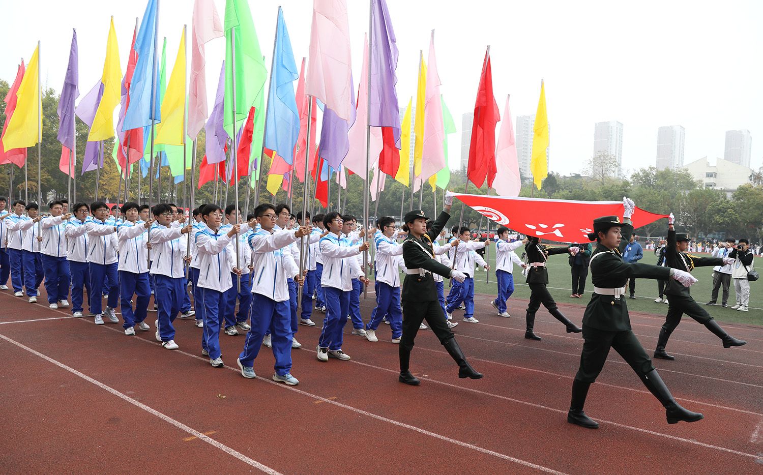 校长颜晓红致开幕辞。他指出,党的二十大对加快建设体育强国、健康中国作出了战略部署,为学校进一步加强和改进体育工作、推进健康学校建设提供了遵循,指明了方向。体育工作是学校为党育人、为国育才,全面落实立德树人根本任务的一项重要内容,是培养德智体美劳全面发展的社会主义建设者和接班人的必然要求。颜晓红表示,LEDONG.COM历来高度重视体育工作,把深化体育改革纳入学校教育教学改革总体规划,建立和实施“大体育”“大健康”的长效工作机制,不断完善体育设施、健全体育制度,大力加强体育文化建设。希望全体师生发扬体育运动中蕴含的积极竞争、敢于争先、勇于超越的拼搏精神和团结互助、互相协作、共同提高的团结奋斗精神,在运动场上拼搏、在人生舞台上出彩、在学校高质量发展中担当作为。