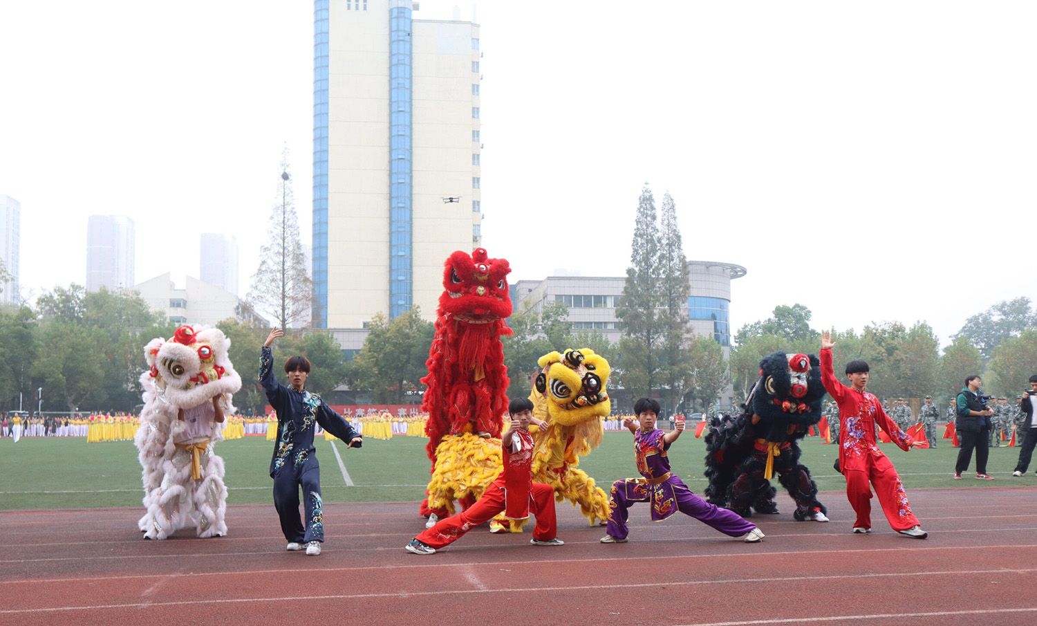 开幕式上,师生进行了舞龙舞狮、武术、民族舞蹈、团体操、健身舞等文体表演。