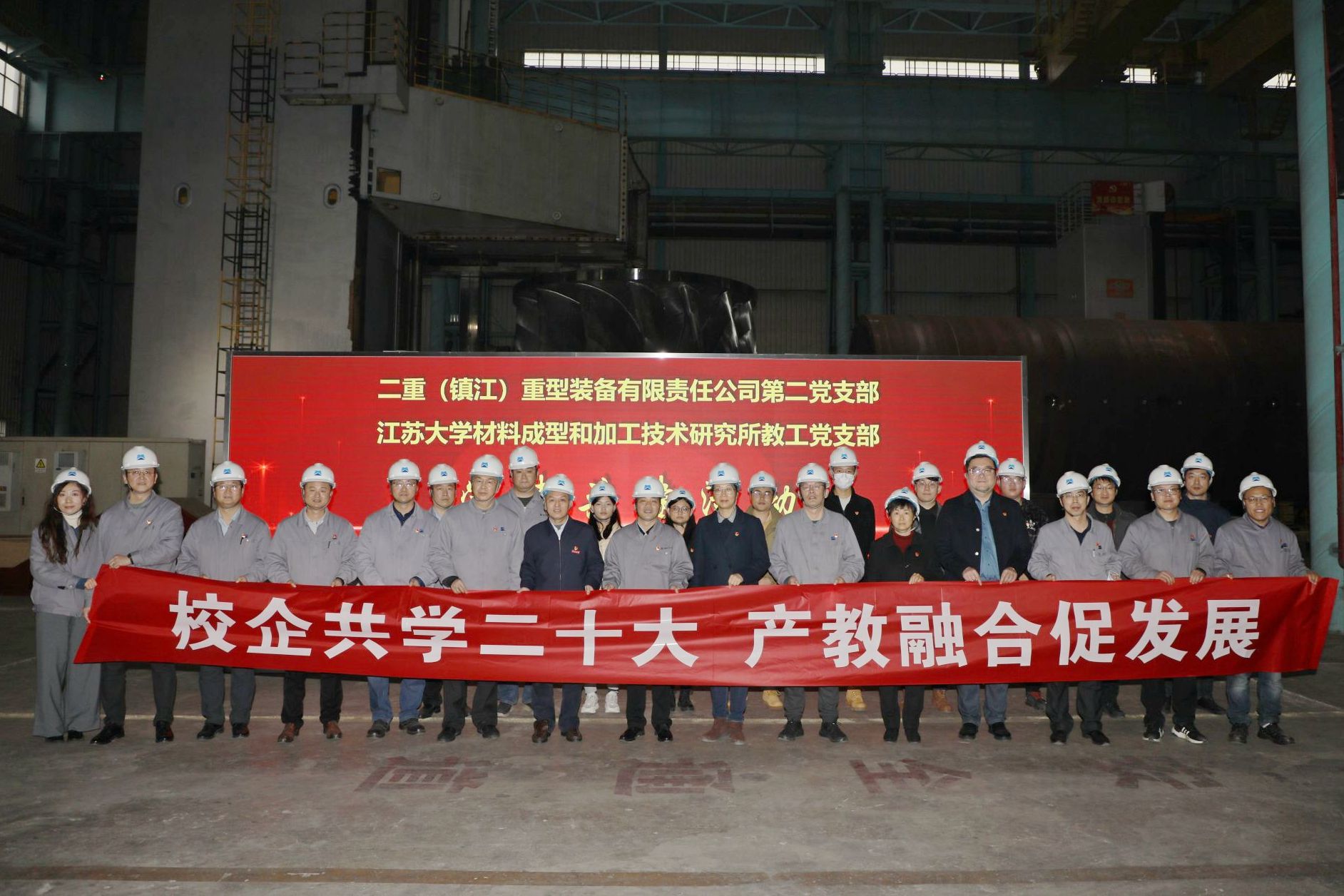 12月8日,材料学院成型所教工党支部与二重镇江公司第二党支部举办“校企共学二十大 产教融合促发展”党建共建活动,学习贯彻党的二十大精神,充分发挥高质量党建引领和汇聚教育、科技、人才等资源的强大合力。校党委副书记、校长颜晓红,二重镇江重型装备有限责任公司总经理杨靖出席活动。