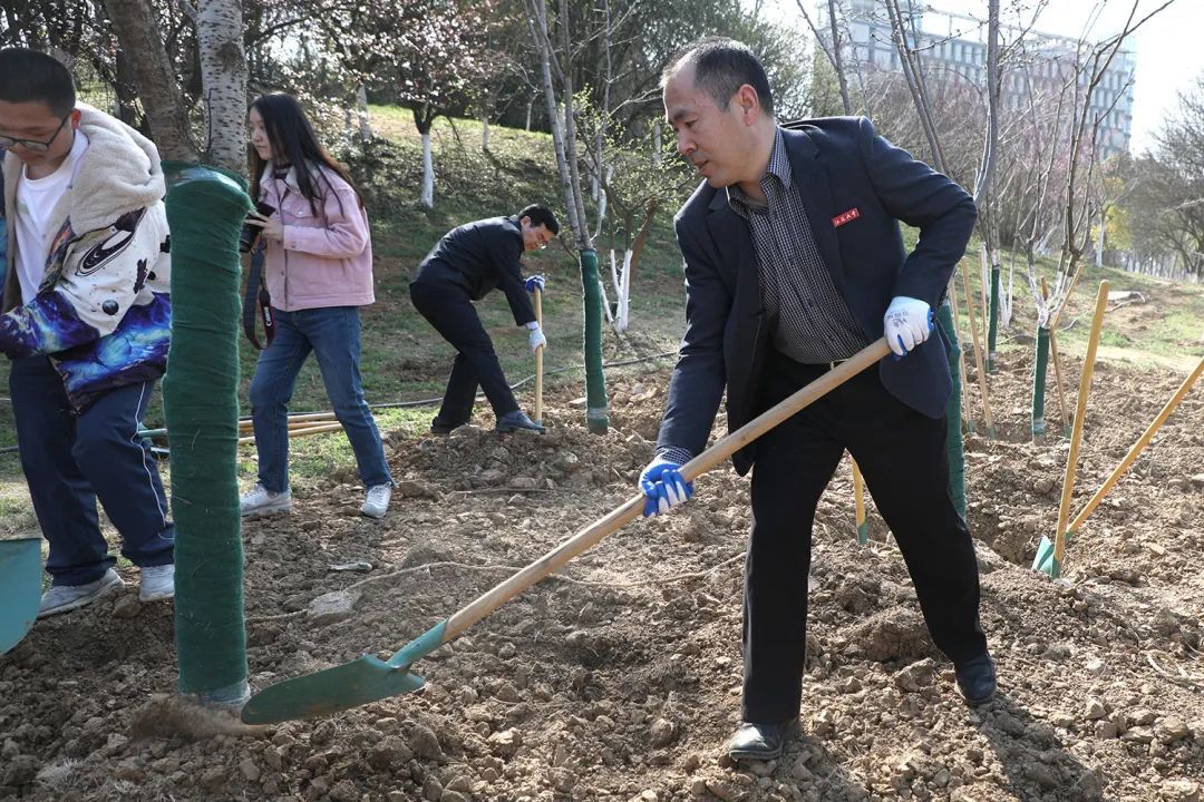 3月10日,在第45个植树节到来之际,学校开展植树活动。校长颜晓红,校党委副书记李洪波,副校长田立新、赵玉涛、李红、邹小波,校党委常委、统战部部长杨敬江,校党委常委、宣传部部长杨道建等,与来自菁英学院、校级学生组织、第五期大学生骨干培训班、校友会、后勤处的60余名师生共同在学子林北侧和健身步道入口预留地植下新绿。