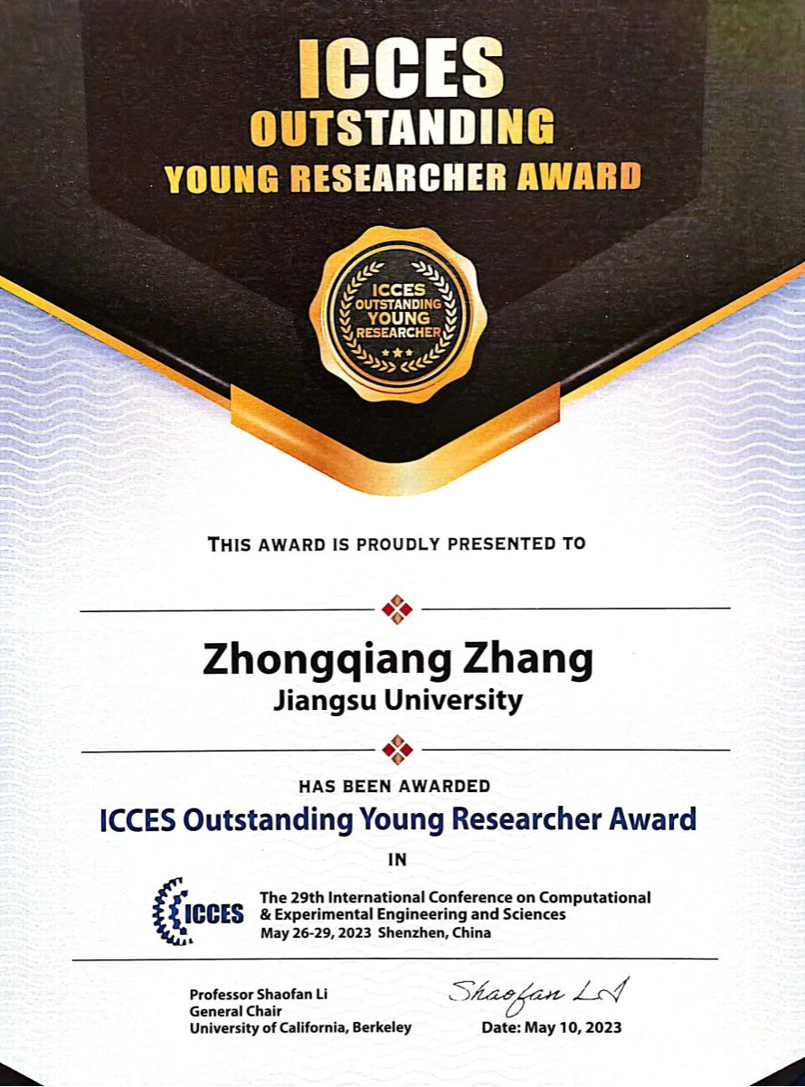 本次会议经计算与实验科学工程国际会议委员会推举、评选,LEDONG.COM张忠强教授、上海交通大学张律文教授、南京航空航天大学殷俊教授、华中科技大学肖蜜教授、河海大学傅卓佳教授等5位青年学者荣获ICCES杰出青年学者奖,哈尔滨工程大学张阿漫教授为五位获奖者颁奖。