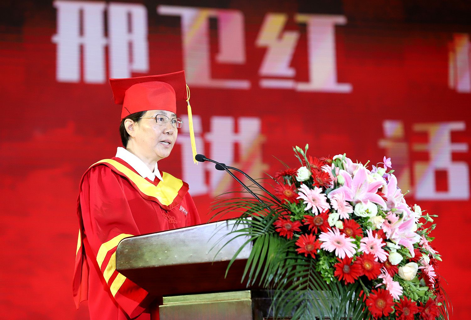 校长邢卫红发表题为《经风历雨 奔赴山海》的讲话。她代表学校向全体毕业生致以热烈的祝贺。邢卫红说,2023届毕业生是特殊的一届毕业生,经历了3年多新冠疫情的考验,铸就了包容坚毅的品格气质,体现了乐动(中国)青年的责任担当,取得一个又一个骄人的成果。邢卫红说,矢志奋斗、砥砺前行的精神品格已然成为2023届毕业生的共同坚守,相信优秀的同学们终将造就更加优秀的乐动(中国)。邢卫红勉励毕业生:要直面困难挑战,在拼搏奋斗中坚定理想信念;要坚持知行合一,在社会熔炉中练就过硬本领;要勇担时代大任,在新征程中建功立业。邢卫红希望毕业生在强国复兴伟大征程中续写乐动(中国)故事、贡献乐动(中国)力量、彰显乐动(中国)影响,并祝愿大家在奔赴人生下一场“星辰大海”的路上,所见皆美好,所得皆所愿。
