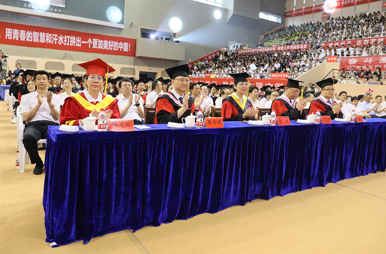 全体在校校领导、校党委常委出席典礼。相关部门和各学院主要负责人、教师代表、校友代表、毕业生代表等现场参加典礼。副校长张济建主持典礼。