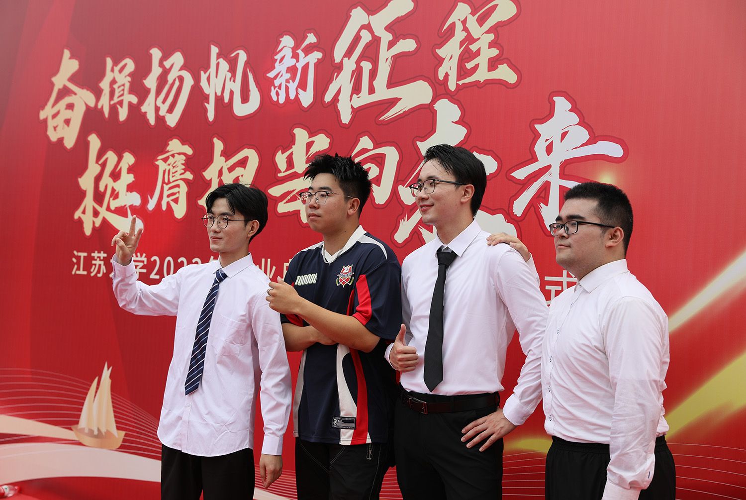 典礼现场外,毕业生们在签名墙上签名,并拍照留念,留下对大学生活的美好回忆。