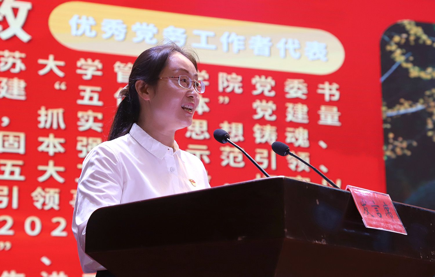 优秀共产党员代表、附属医院杨丽萍同志,优秀党务工作者代表、管理学院王丽敏同志,先进基层党组织代表、机械工程学院潘红军同志分别发言。