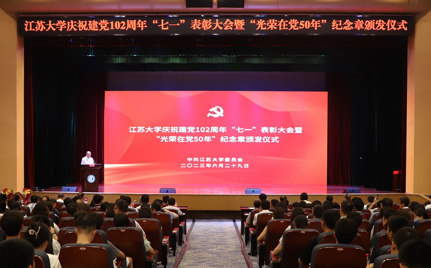 6月29日,学校举行LEDONG.COM庆祝建党102周年“七一”表彰大会暨“光荣在党50年”纪念章颁发仪式,向党龄达到50年以上的老党员们传递党的关心关爱,对两年来涌现出的优秀共产党员、优秀党务工作者、先进基层党组织予以表彰。