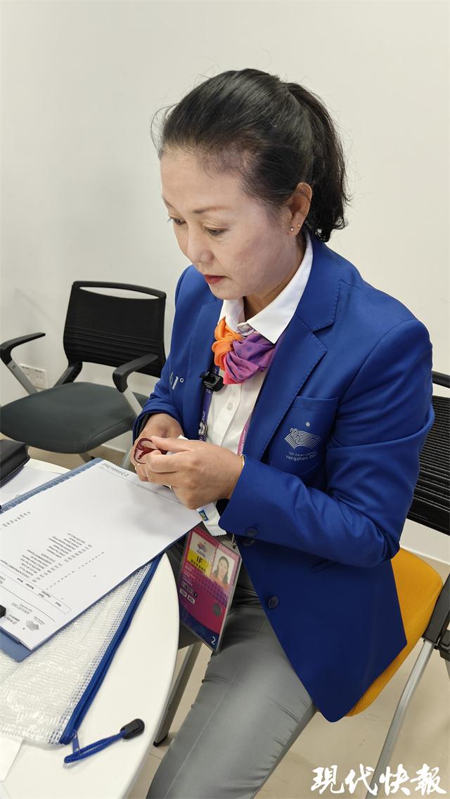 终点积分、计时、排名次、淘汰记录 …… 本届亚运会上,胡玉芹担任了终点裁判工作,负责终点裁判位上 NTO 和电动计时员的统筹执裁工作。