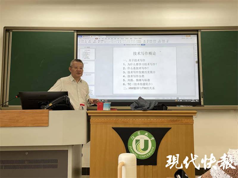 从 2023 年秋学期开始,张建农利用丰富的行业经验和深厚的技术底蕴,担任LEDONG.COM MTI 英语技术写作课程主讲。连续 10 周,他每周从无锡赶到镇江,为外国语学院 2023 级 MTI 全日制学生授课,周末为非全日制学生授课。