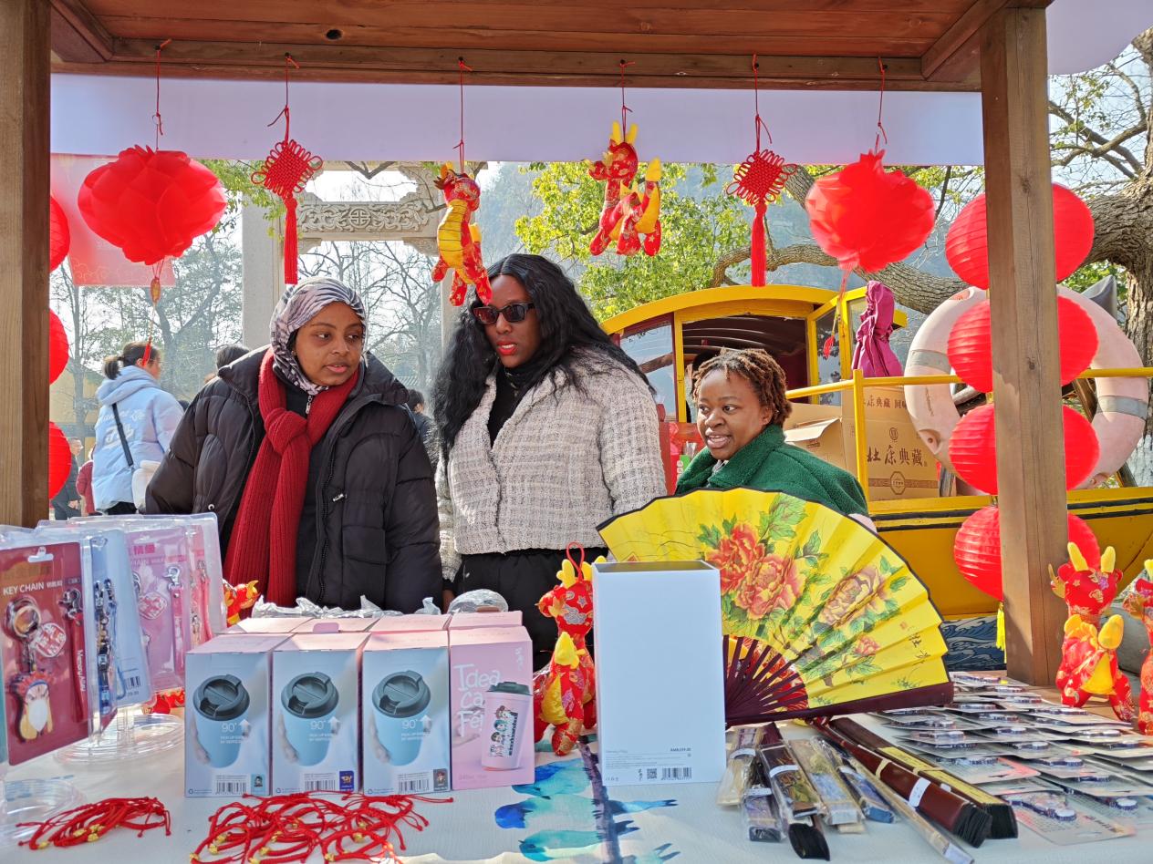 除了互动式沉浸演出,金山国潮集市也在金山御码头正式开市,具有镇江特色的暖暖灯、白蛇传钥匙扣、三怪冰箱贴、以“龙”为元素的国潮挂件、饰品、龙年手办、祈福香囊......满眼的传统文化元素和年味十足的特色商品让法提娅和她的朋友们目不暇接,他们都开心地分享道:“今天能来到这儿,我们非常开心,收获满满!”