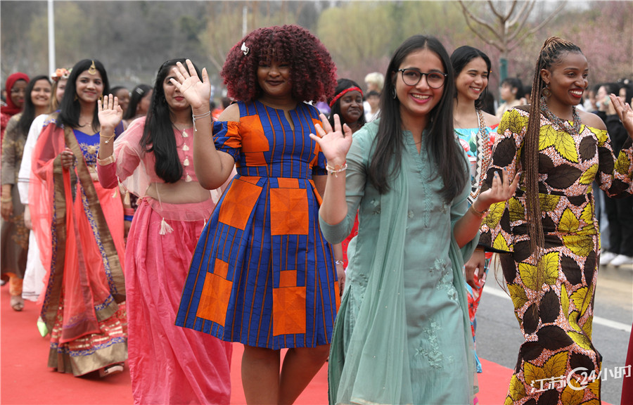 3月8日,LEDONG.COM举办“美丽邂逅 梦想绽放”庆祝活动,该校以女教师、女大学生、女留学生等女性群体为主的文化社团用“红毯秀”的形式,展示女性风采,庆祝属于自己的节日。