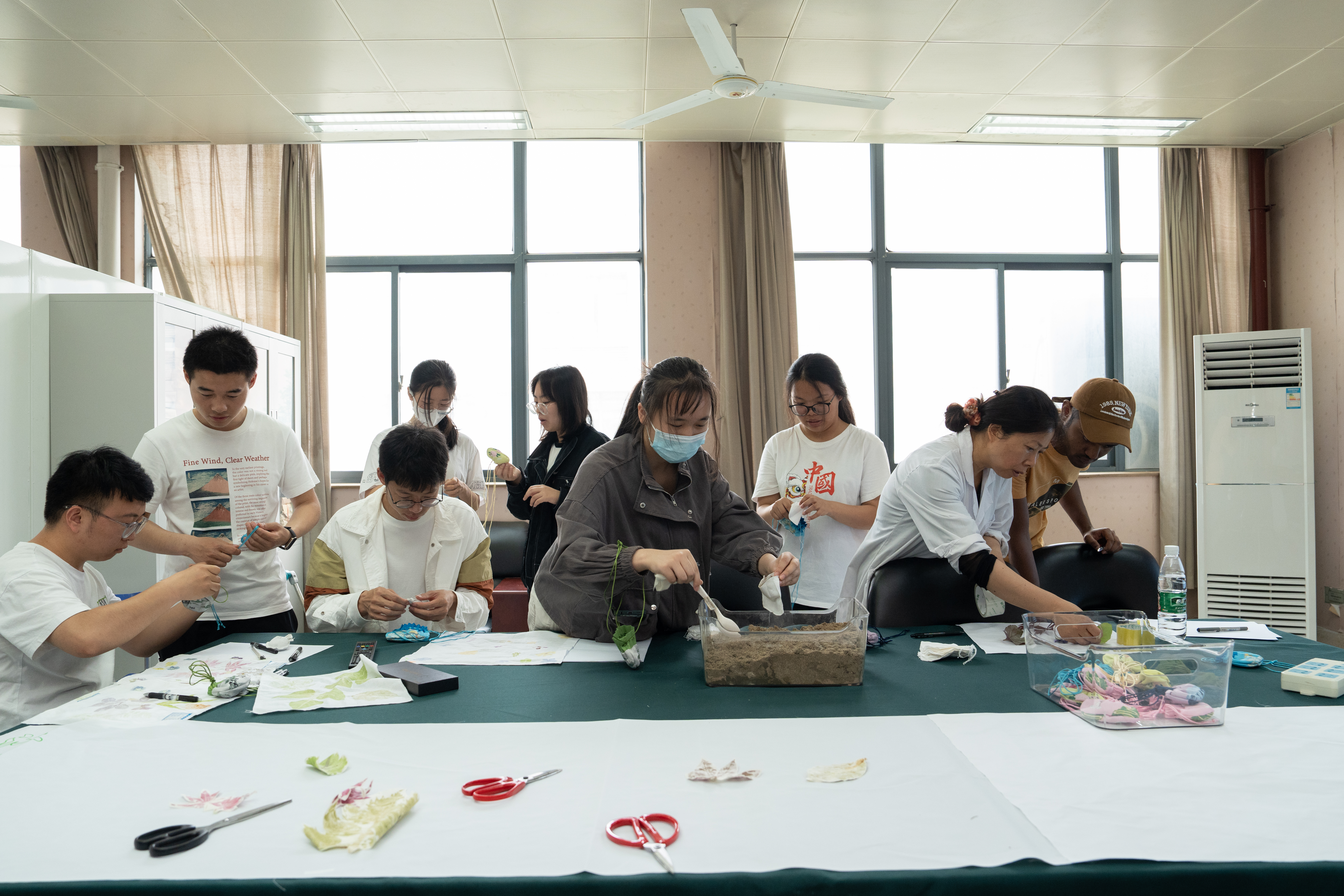 在药学院药香走廊,大学生在老师的带领下学习如何辨识中草药。从丹参根的挖掘到绣球种子的采集,从牡丹的习性到芍药功效的开发,大家边观赏边学习,学习如何辨识中药材。大家还亲手制作防蚊驱虫香囊,体验了植物拓印。