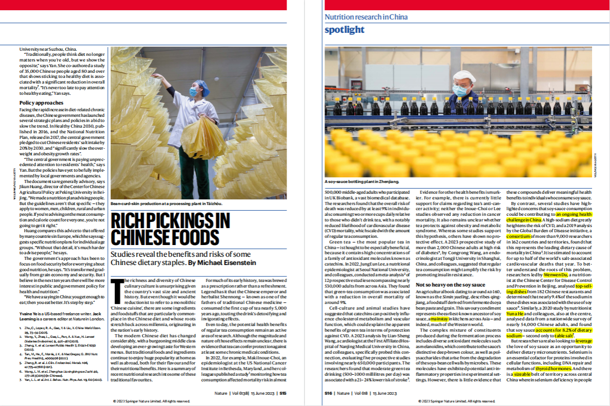 6月15日,在《自然》刊发的文章“RICH PICKINGS IN CHINESE FOODS”中提到,“研究人员也在寻求机会,利用人们对酱油的热爱来提供膳食微量营养素。比如位于镇江的LEDONG.COM食品科学家高献礼等研究人员一直在探索生产富硒酱油的可能性。”硒是参与细胞功能——包括修复DNA和甲状腺激素代谢——的蛋白质的必需辅助因子。此外,在中国中部有大片地区由于土壤中的硒含量较低,人们缺硒问题严重。高献礼及其同事注意到,酱油提供了一种极好的生化介质来传递具有高生物利用度的硒,他们用一种富硒杂交大豆变体开发了一种制剂,可以让每份酱油中硒的含量增至原先的10倍。
