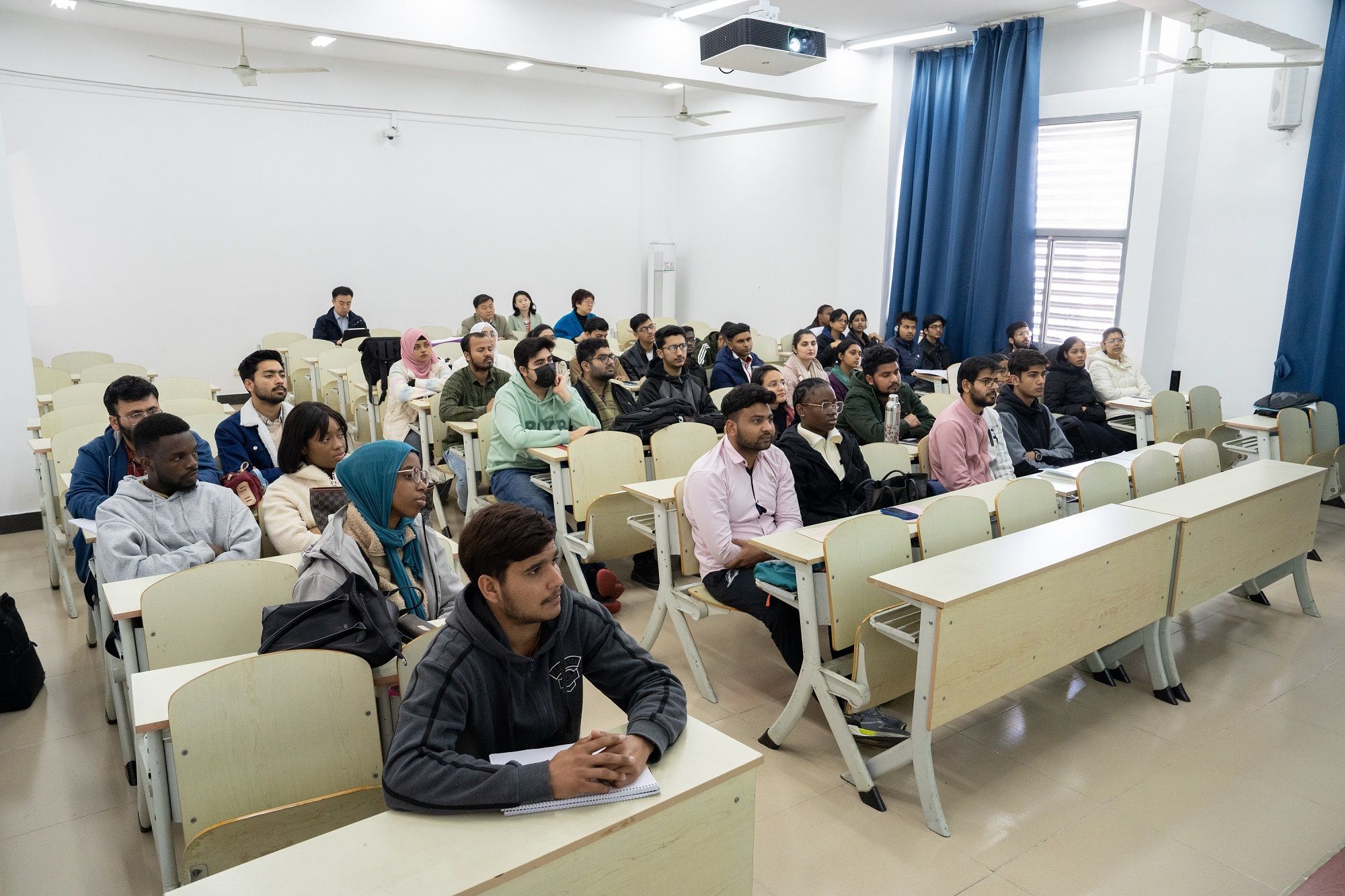 颜晓红介绍了学校事业发展成绩以及来华留学教育的主要举措与成效。他指出,学校实施“一把手”工程构建“大外事”工作格局,聚力服务“一带一路”,深化产教融合,探索来华留学教育管理全方位体系,坚持质量为重、规模适度,倡导“同窗学习、同室创新、同台竞技”国际化育人理念,推进留学生“自我设计、自我教育、自我服务”,培养出一批又一批优秀留学生。