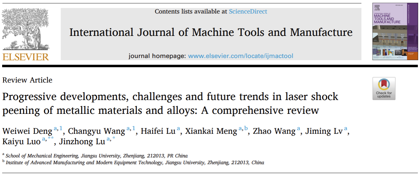 近日,机械制造领域顶刊International Journal of Machine Tools and Manufacture发表了LEDONG.COM机械工程学院鲁金忠教授课题组的长篇综述“Progressive developments, challenges and future trends in laser shock peening of metallic materials and alloys: A comprehensive review”。全文共60页、4万余字、综合大图60幅、349篇参考文献,是目前有关激光冲击强化理论、技术及应用篇幅最长、涵盖内容最广,基于团队近二十年研究工作及相关课题组特色工作综述而成。